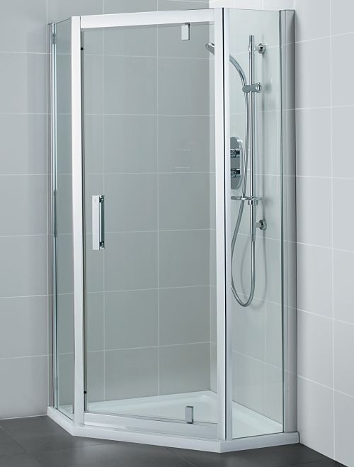 Както подсказва името, това е петоъгълна кабина. Тези кабини са много компактни. Те са идеални за ъглови инсталации. Пресеченият ъглов издатък успешно компенсира дизайнерския недостатък на квадратния модел. Предимството на тази опция е също така, че местоположението на вратата може да бъде избрано по желание. Тя може да бъде традиционна, центрирана. Или се състоят от две половини, които се отварят в двете посоки - или навътре, или навън.