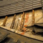 Вертикалният закрепващ профил е монтиран на стената на разстояние 2 см от ръба на палета. Първо е необходимо да премахнете силиконовия слой, който свързва стената и ръба на палета. Това се прави първо с фреза, а след това със специален разтвор. Местата на бъдещата инсталация на профила или по-точно мястото на закрепването му към стената трябва да бъдат внимателно проверени с детектор. Ако детекторът показва наличие на електрически кабели или водопроводни услуги зад облицовката или повърхността на стената, точките на закрепване трябва да бъдат преместени.