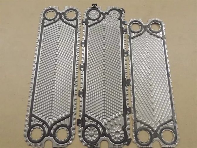 канали (жлебовете са разположени под ъгъл от 600). Такива плочи се характеризират с незначителна турбулентност и ниска интензивност на топлопредаване, но „меките“ плочи имат минимално хидравлично съпротивление; - с "Средно аритметично"