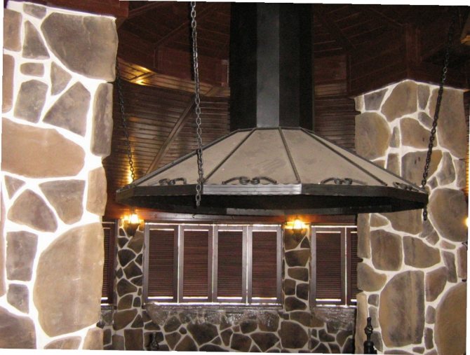 Мнозина се интересуват от това как е прикрепена такава качулка. Това може да се направи или със стелажи, или с окачвания. Първите са направени от тухли или желязо. Можете също така да добавите интересен железен елемент - масивни вериги, върху които ще бъде монтирана качулката.