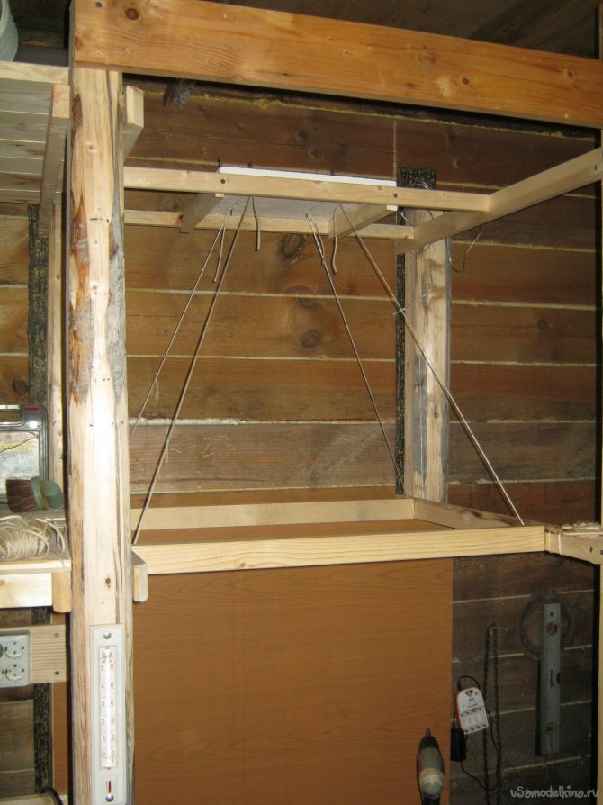 Както вече споменахме, сканиране може да се изгради посредством описателна геометрия без никаква „естественост“, само на хартия или екран, но в моя случай почти всичко беше готово за изграждане на модел „на земята“ в пълен размер. Долният периметър, на който ще бъде прикрепена камбаната на чадъра, и горният за закрепване на портата вече бяха на мястото си. Оставаше да нарисувате изходна дупка в природата и да изтеглите четири струни. Лесно е да прехвърлите модела върху чертежа и да направите плосък шаблон.