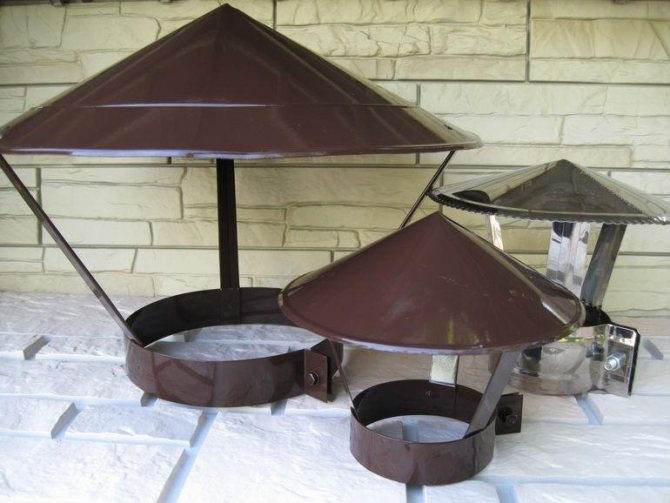 - дефлектори - капачки за кръгли тръби, характеризиращи се с доста сложна вътрешна структура за увеличаване на сцеплението.