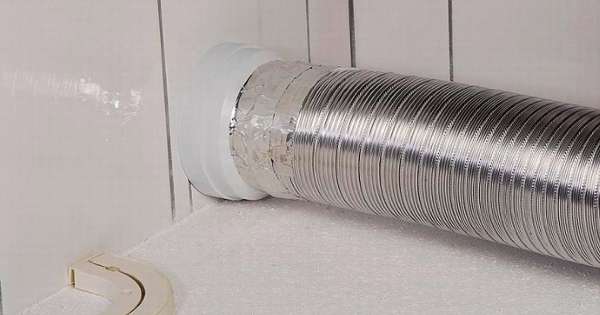 - Гофрирани канали. Най-лесно е да свържете гофрираната тръба към вентилационния канал, тъй като алуминият се разтяга, което прави продукта гъвкав. Вълната има специални фиксиращи скоби от всяка страна, което значително опростява монтажа. Закопчаването е лесно с домакински инструмент.
