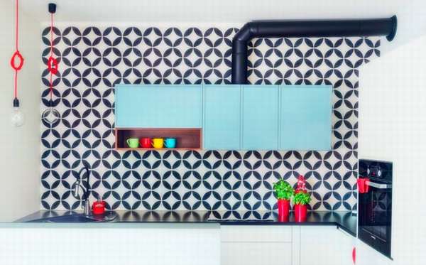 - Изработване на декоративна кутия от гипсокартон. Кутията е съобразена с дизайна на кухнята, докато самият дизайн е боядисан в цвета на тапета.