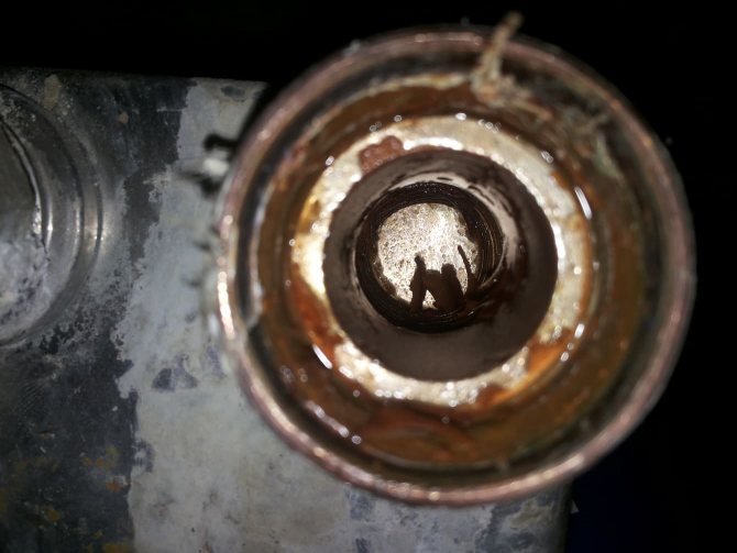В самото начало отбелязваме, че винаги е по-лесно и по-лесно да се направи профилактиката на отоплителното оборудване, отколкото да се премахнат неизправностите, които се появяват в средата на зимното студено време. Топлообменникът на газовия агрегат не прави изключение, което за профилактика може да се промива отвътре веднъж на 2-3 години, в зависимост от твърдостта на използваната вода. Ако има контур за отопление с топла вода за БГВ, препоръчително е също така да се промива вторичният топлообменник за котела веднъж на 2 години, тъй като през него преминава необработена чешмяна вода, оставяйки скала, както е на изображението.