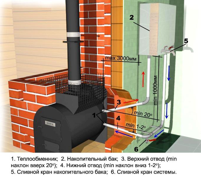 Като правило се използва холистична система за създаване на пълноценно отопление на дома. Състои се предимно от метален резервоар, притежаващи доста значителен капацитет. Към него са свързани специални тръби. Този елемент по никакъв начин не влиза в контакт с открит огън. За производството се използва пещно оборудване отопление на вода, след което влиза в отделните помещения на сградата по дължината на намотката. В този случай може да се осигури еднакво и качествено отопление на цялата къща. Тук е важно правилно да свържете оборудването към фурната и самото устройство може да бъде свързано отвън или отвътре фурни.