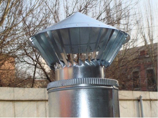 Чадърът, прикрепен към горната част на тръбата, ще изпълнява функцията за отвеждане на въздуха.Натрупаните въздушни маси от отделянето на вредни газове, пари, прах, топлина имат вредни последици, когато човек вдишва кислород.