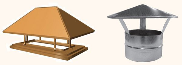 - чадъри - представени от капачки, характеризиращи се с опростен дизайн и предназначени за кръгли или квадратни тръби;