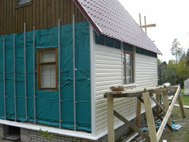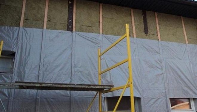 След подготовка на фасадата - почистване от мръсотия, обработка на дърво, импрегниране с огнезащитно и антисептично средство, прикрепяме пароизолационна лента или мембрана.