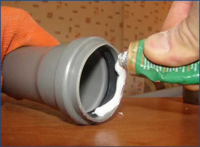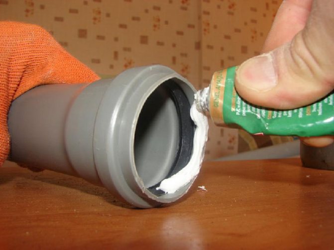 Материалът се използва за уплътняване на фугите на тръби, изработени от различни материали, както и местата, където са монтирани вложките, тапите и всякакви други елементи. За да запечатате канализационна тръба, трябва да направите следното: