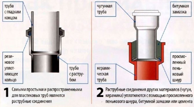 С тяхна помощ канализационните тръби се запечатват, а пластмасовите конструкции и металните щрангове се съединяват. (Вижте също статията Канализация в частна къща: характеристики на устройството.)
