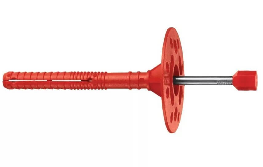 - Изолационният дюбел с пластмасов нокът трябва да се използва при монтиране на леки материали като пяна или минерална вата. За изолация с висока плътност е по-добре да използвате метален прът, но не забравяйте за студените мостове, използвайте термични глави.