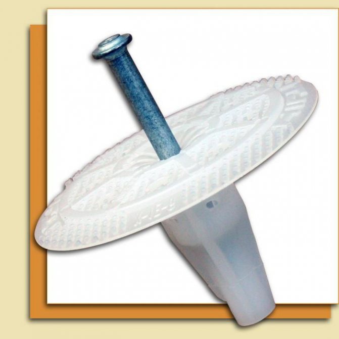 За закрепване на твърда и мека изолация, т.нар гъбени дюбели за топлоизолация, или, с други думи, гъби с форма на ястие. Те са в състояние да държат дори хлабава и крехка изолация. С помощта на гъбен дюбел можете да монтирате материала върху почти всички видове плоски повърхности от бетон, тухли, пенобетон и газобетон, както и върху строителен камък.