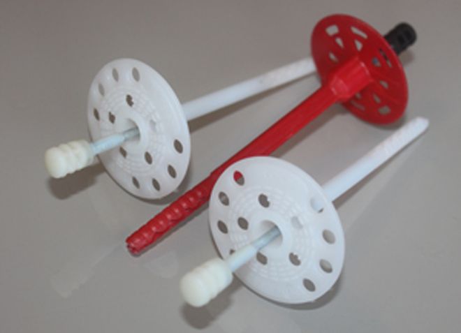 - Гвоздеят и дюбелът са изработени от един и същи вид пластмаса. Не се препоръчва да се използват различни видове, тъй като техните коефициенти на топлинно разширение ще се различават. Топлоизолационният дюбел с пластмасов пирон се използва при почти всички климатични условия.