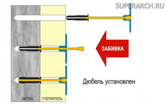 На първо място, трябва да изчислите колко дюбели имате нужда, каква дължина и диаметър трябва да имат. Зависи от изолацията. Теглото му е практически без значение, важни са дебелината и степента на разхлабване.
