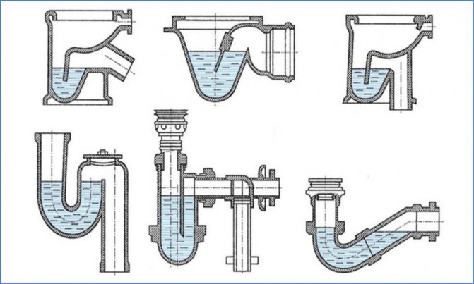 На пазара на ВиК оборудване можете да закупите както готово водно уплътнение за канализационната система, така и различни елементи, от които е лесно да го сглобите сами. Потребителят обикновено използва два или три вида хидравлични заключващи устройства, а останалите модификации са предназначени за работа в специфични условия.