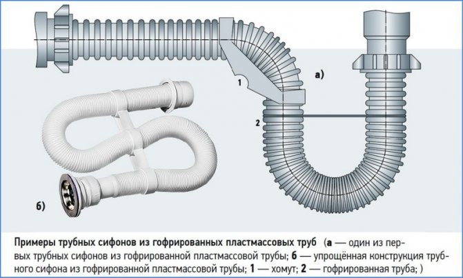 Типът гофриран сифон е представен от полипропиленова модификация, която се отличава със своята здравина, гъвкавост и възможност за монтаж при подреждане на канализационни системи в малки помещения. Поради своята пластичност, такава тръба може да бъде разположена на места, където не могат да се поставят други видове сифони. Това е най-простият вариант, който съдържа минималния брой елементи, които не трябва да се сглобяват.