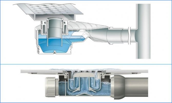 Като правило при проектирането на повечето стълби е предвиден обикновен воден уплътнител, разположен в сифона. Но такова устройство има един съществен недостатък - ако не използвате душ дълго време, тогава водата вътре се изпарява и неприятните миризми проникват в банята. В този случай е по-добре да изберете душ капан със сухо затваряне.