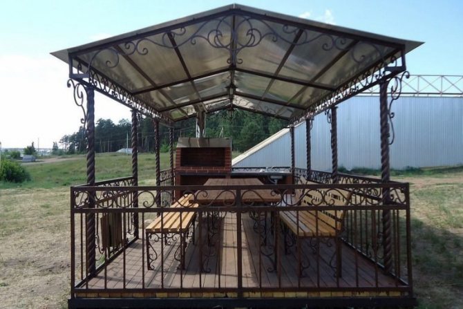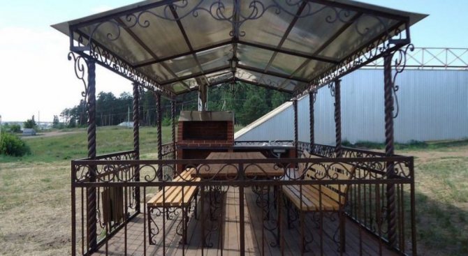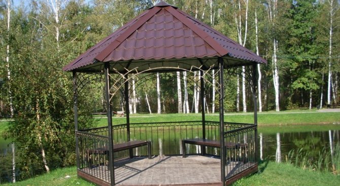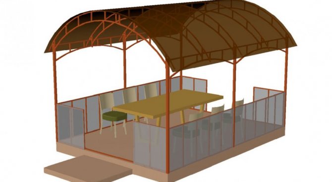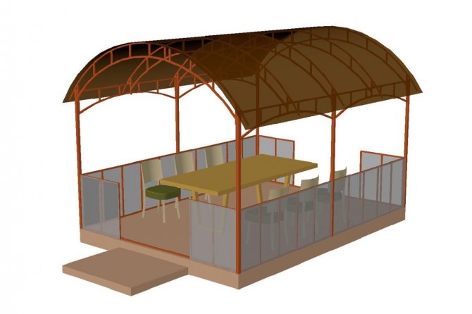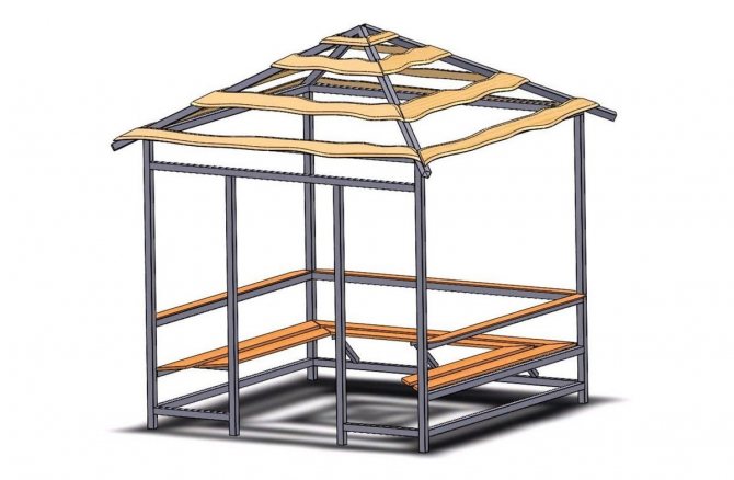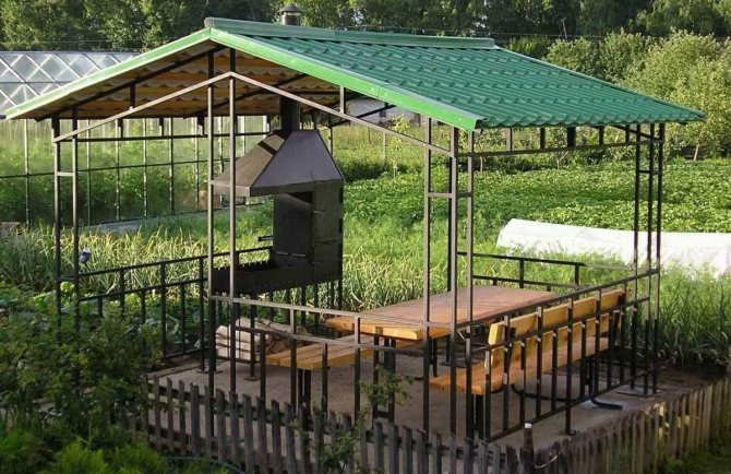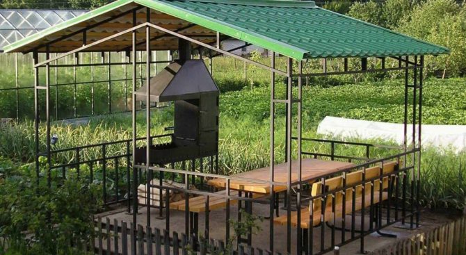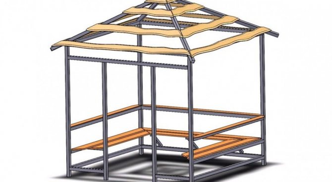 Важно! Металният профил, използван за стълбовете на летния павилион, трябва да бъде здрав, за да придаде стабилност и надеждност на цялата конструкция. Други елементи, в зависимост от функциите на крайния продукт, може да са по-малко трайни.