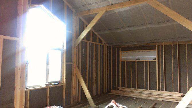 Ключовата разлика между изобела като минералната вата и пяната е, че той не е монтиран директно към стената с лепило, а е поставен вътре в клетките, образувани от дървена щайга. Плюс такава необходимост - допълнително укрепване на строителната рамка, минус - финансови инвестиции.