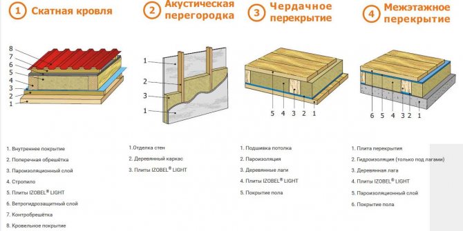 На практика Isobel се използва почти на същото място като обикновената минерална вата. Но ако се съсредоточите върху препоръките на производителя, тогава си струва да използвате изолация в следните области: