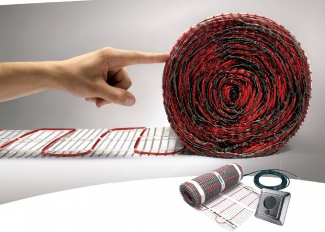 Електрическите рогозки могат да бъдат напълно монтирани в адхезивен слой от само 10 мм. В същото време много модели рогозки вече са оборудвани със залепващ слой, поради което, за разлика от кабелните системи с поетапно разположение на нагревателния елемент, подложката просто се навива над повърхността.