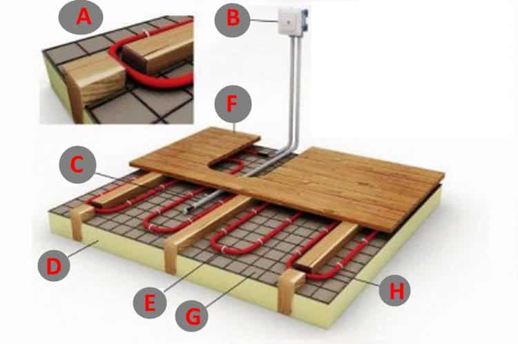 Днес никой няма да дърпа тръби под паркетния под и да ги пълни с пара. Представената от древните идея се е променила и съществува като подово отопление с циркулираща вода или нагревателен кабел. Накратко, системата за водно отопление е система от гъвкави тръби, положени под горния слой на подовото покритие, а принципът на действие е същият като този на обикновените чугунени радиаторни батерии, монтирани под прозорците. Между другото, свързването към централното отопление е един от начините, по които функционира този етаж. Вторият начин за повишаване на температурата под краката е с електрически нагревателен кабел. Ще спрем на неговото описание, ще анализираме как протича инсталацията и няма да направим без многобройни видеоклипове.