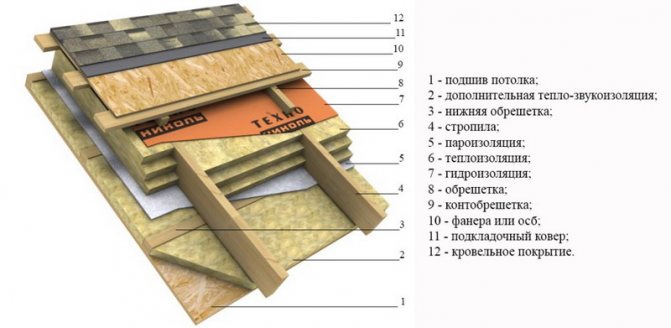 - Филмът за хидроизолация е положен с провисване между летвите на летвите. Между топлоизолационния слой и хидроизолацията трябва да има поне 3 см, в противен случай няма да работи за проветряване на подпокривното пространство.