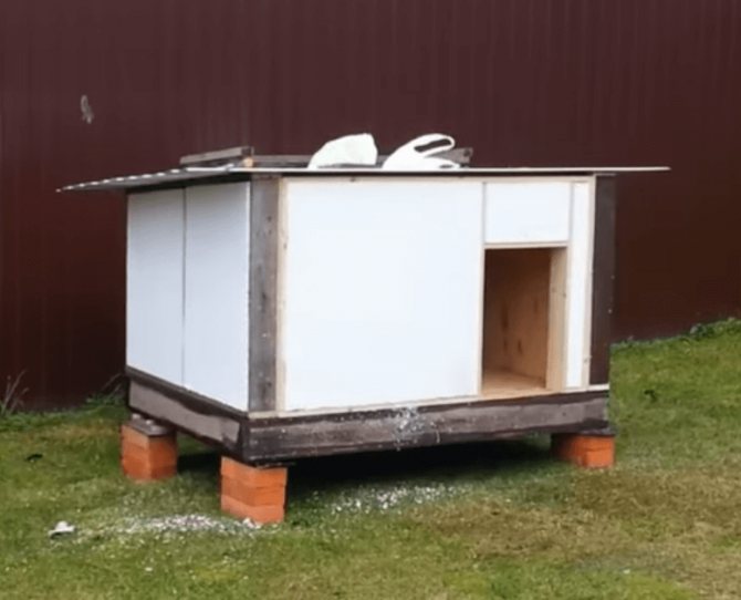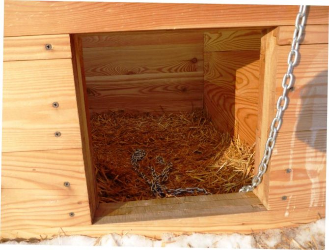Класическата версия с изолация на развъдника с PPS листове. Ъглите на входа са заковани, така че кучето да не скъса лигавицата с верига