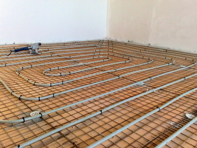 - Фиксирайте отоплителните тръби към пода, като използвате специални V-образни скоби или тел с мека подплата.