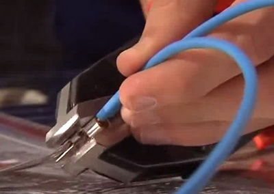 Скобата се вкарва под медното фолио и се затяга с клещи.