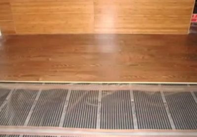 Най-горното покритие се полага отгоре. Монтажът на инфрачервено подово отопление е завършен.