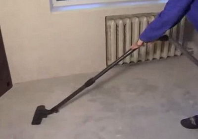 - Те започват да подготвят пода, освобождавайки го от отломки и проверявайки нивото на повърхността, използвайки строително ниво на водата.