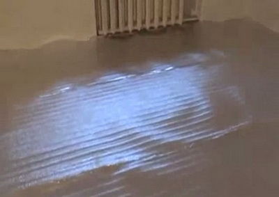 За да избегнете такава ситуация, инсталирайте маяци за бъдещата замазка, на определено разстояние (стъпка) и ги фиксирайте с хоросан. С такава рамка можете спокойно да започнете да духате отоплителния кръг.