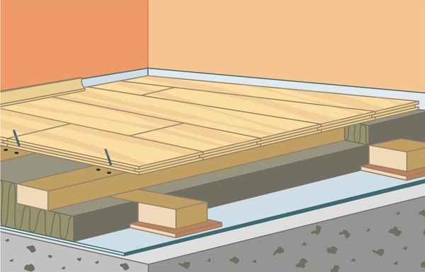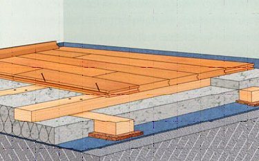 Бетонни подове. За да поставите трупи върху бетонни подове, трябва да знаете конструктивните характеристики на пода, монтиран по този начин.