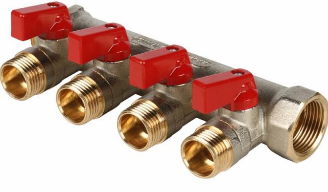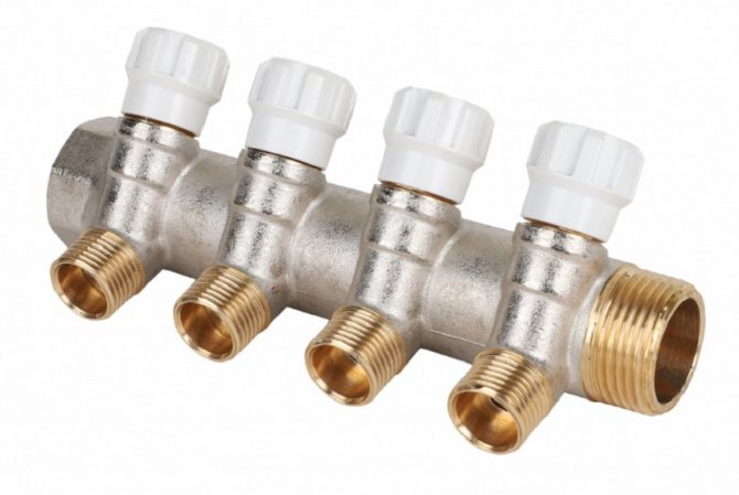 - Подаване на колектор към пода. Може да се нарече и клапан за регулиране на потока за отделен клон.