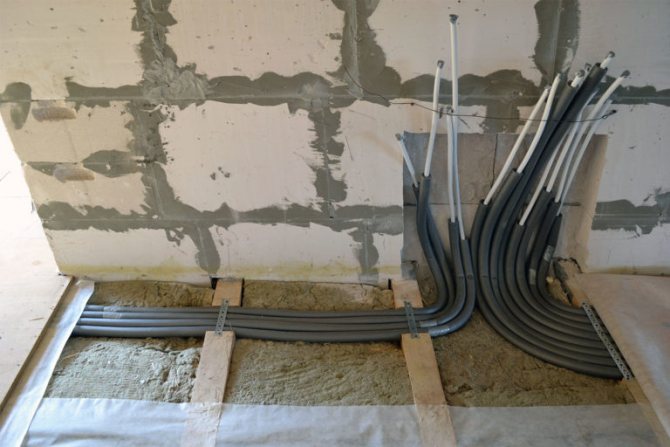 Шкафът за колектор за подово отопление е свързан, като се вземе предвид увеличаването на пода от точката на дебелината на неговите слоеве.