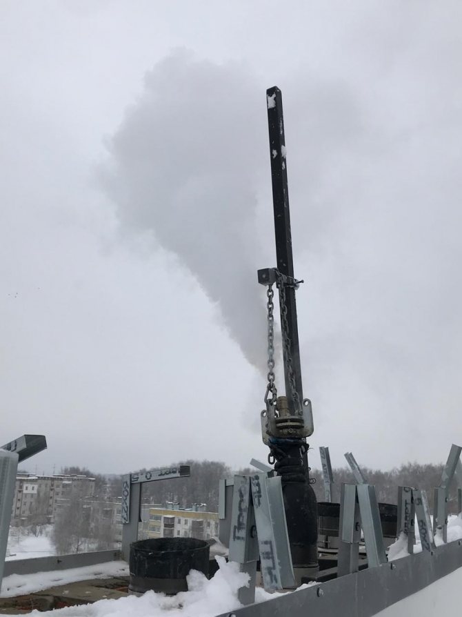 Вълнообразната вентилационна тръба от марката на отдушника с диаметър 75 mm е свързана към изходната тръба на корпуса на резервоара с абсорбера. За пълното отстраняване на димните газове трябва да бъдат изпълнени няколко условия за монтаж: