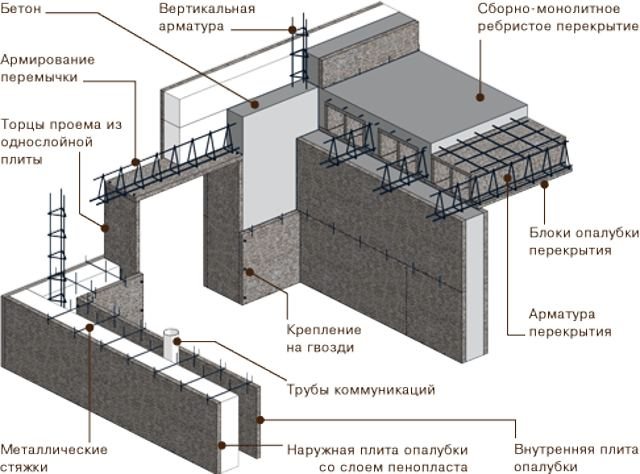 В тези отделения се излива бетонов разтвор, той се втвърдява и самата конструкция не се отстранява, а остава завинаги, изпълнявайки защитните функции на основата и осигурявайки допълнителна топло- и шумоизолация.