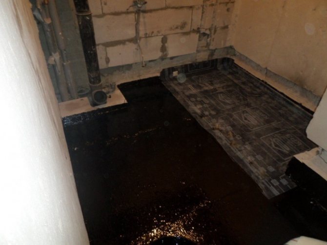 Хидроизолацията на пода във вана или душ се извършва с материали на базата на полиуретани или гуми.
