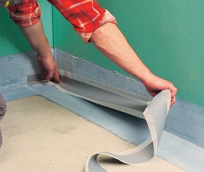 Хидроизолацията на пода на душа има свои собствени характеристики. Преди всичко, фугите между стените и пода трябва да бъдат защитени от проникване на вода. За това се използва уплътняваща лента.