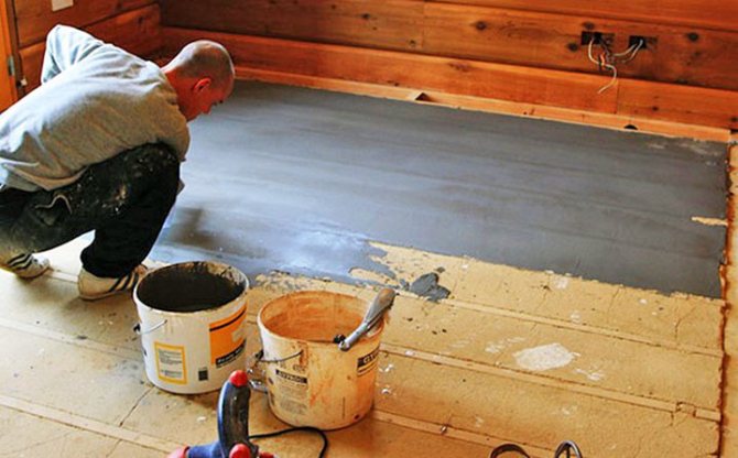 Шперплатът, предварително обработен с влагоустойчива импрегнация, се полага върху изолацията. След фиксирането на пода върху листовете се нанася хидроизолационен грунд. Трябва да изсъхне достатъчно добре, а мръсотията и прахът не трябва да попадат на повърхността му.