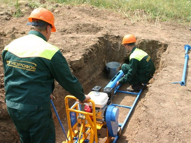 Този метод е особено ефективен при рохкави песъчливи почви, които лесно се отмиват от струята. Позволява ви да направите дупка с диаметър около 50 см за минимално време. Но максималната дължина на кладенеца по време на хидропробиване е 30 m.