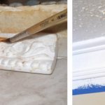 - Подготвителни работи, почистване на таванната повърхност от старото покритие, запечатване на неравности и пукнатини с циментов разтвор.