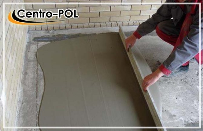 Изравняването е особено важно при полагане на приземния етаж върху земята. Има и неравности и пукнатини в подовите плочи. За да се премахнат нередностите в първия случай, е необходимо повърхността на почвата да се изравнява със слой от трошен камък с дебелина 10 см, върху който е необходимо да се запълни слой пясък със същата дебелина.