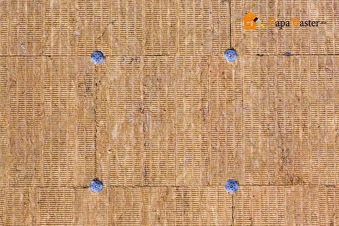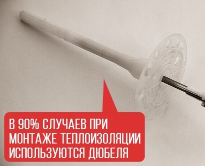 В 90% от случаите закрепването на минерална вата и други материали към стената става с помощта на дюбели.