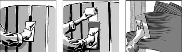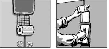 | Запълваме всички кухини с разтвора. | На разрезите нанасяме подсилваща лента. | Покриваме по обичайния начин. |