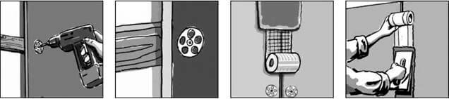 След като лепилото стегне, в листа се правят дупки за дюбели. Те ще създадат сила.