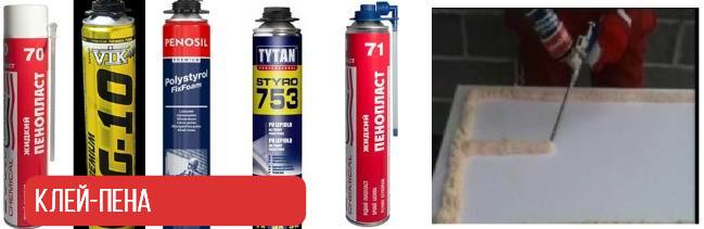 Първият вид се произвежда в торби. Отглежда се съгласно инструкциите на опаковката. Лепилната пяна се произвежда в цилиндри. Не е необходимо да се разрежда с вода и да се смесва. Нанасянето се извършва със строителен пистолет.