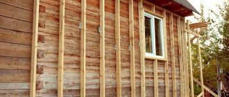 - По протежение на ширината (малко по-малко) на изолацията, запълнете хоризонтални или вертикални дървени летви, които ще бъдат по-високи от дебелината на изолацията.